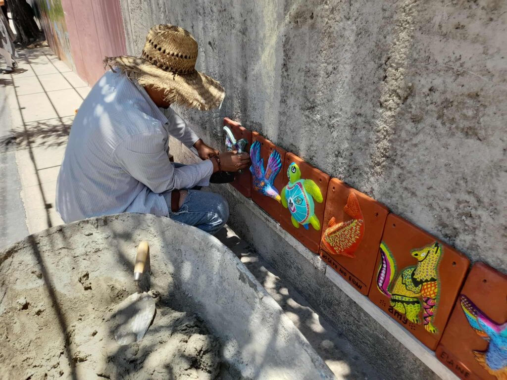 Dos de los murales más esperados del proyecto de arte urbano de San Antonio Tlayacapan son el de las Tonas y los Alebrijes, animales protectores, cuya instalación comenzó el pasado 7 de mayo, en el muro exterior de la escuela primaria “Cuauhtémoc”.