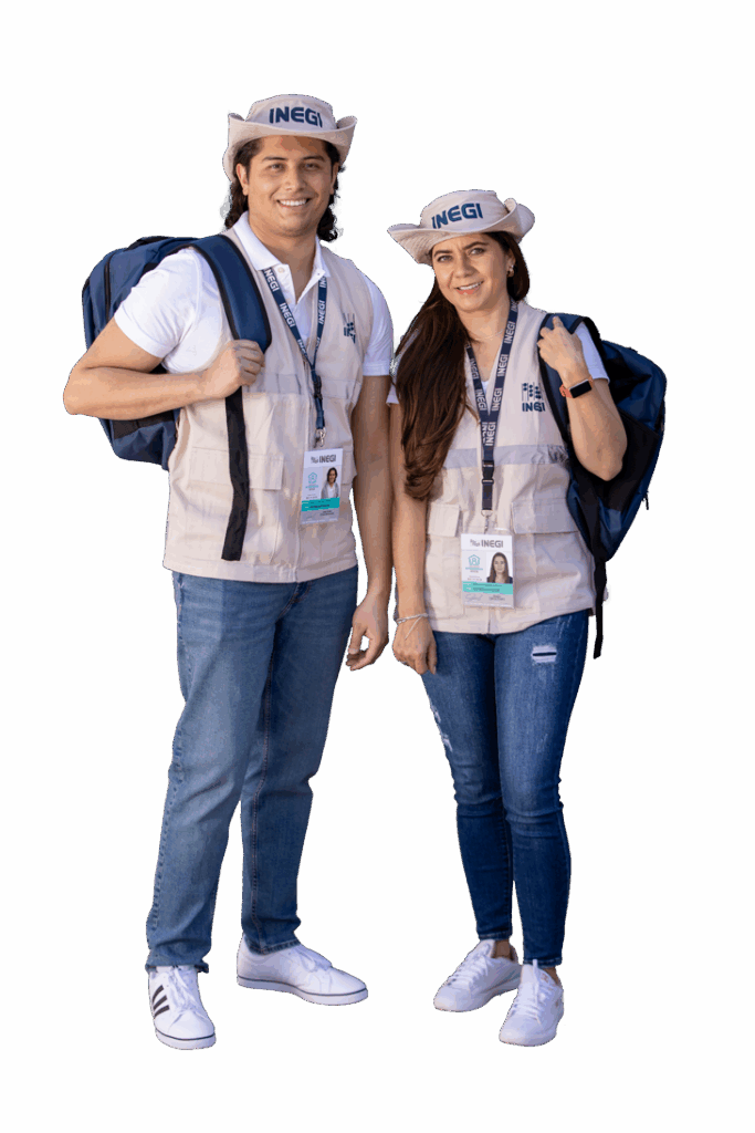 El personal que toque a la puerta estará debidamente identificado con chaleco, sombrero y mochila con el logotipo del INEGI. Además, portará de manera visible una credencial del fotografía, nombre completo, holograma y un folio que puede ser verificado en el portal del INEGI o al número 800-111-4634, para evitar confusiones entre la gente.